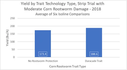 Advantage of planting a hybrid with Agrissure Duracade technology in fields where corn rootworms is expected