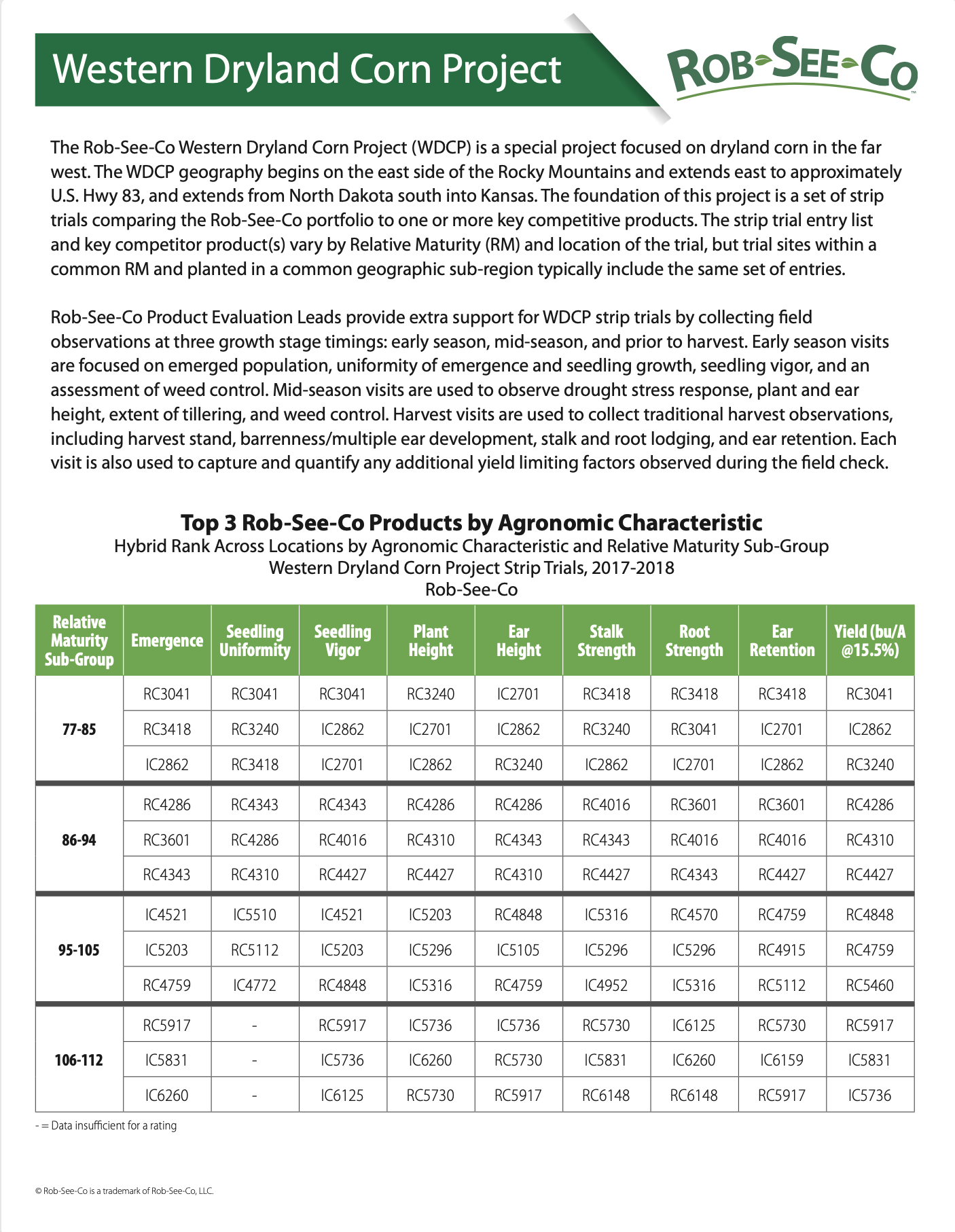 Our Product Evaluation Leads are dedicated to understanding how our products perform by observing product in plots and fields across your area. They share their observations and insight with our sales group, so your Rob-See-Co team is prepared to make recommendations best suited for you.